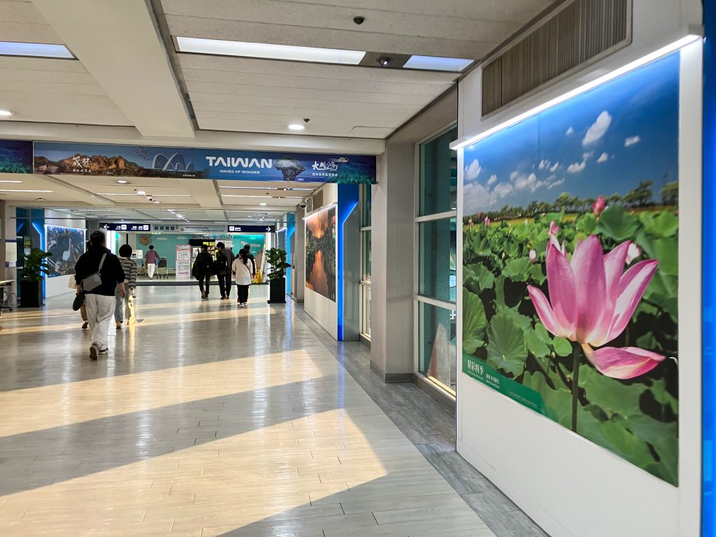 空港の廊下。明るいです。表記が日本と同じ漢字なので、異国感があまりないです。