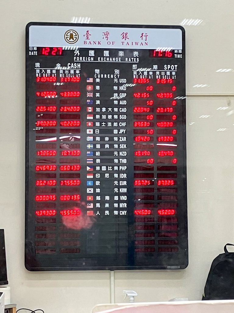台湾銀行の両替窓口。台湾ドルが全くないので、こちらで両替。